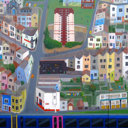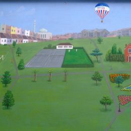 Two mural panels installed at Bedminster Station, one depicting Windmill Hill, the other depicting Victoria Park, in Bristol. This design was chosen by local residents, from three Bill submitted. It was commissioned by Severnside Community Railway Partnership.
