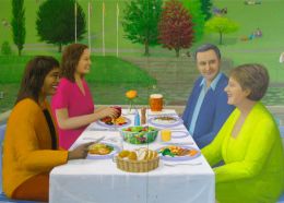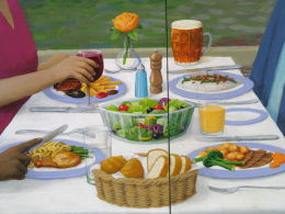 As well as creating interest and a pleasant ambience in the room, the work also has the intention of assuring and reminding the patients where they are, and secondly of stimulating their interest in eating.
